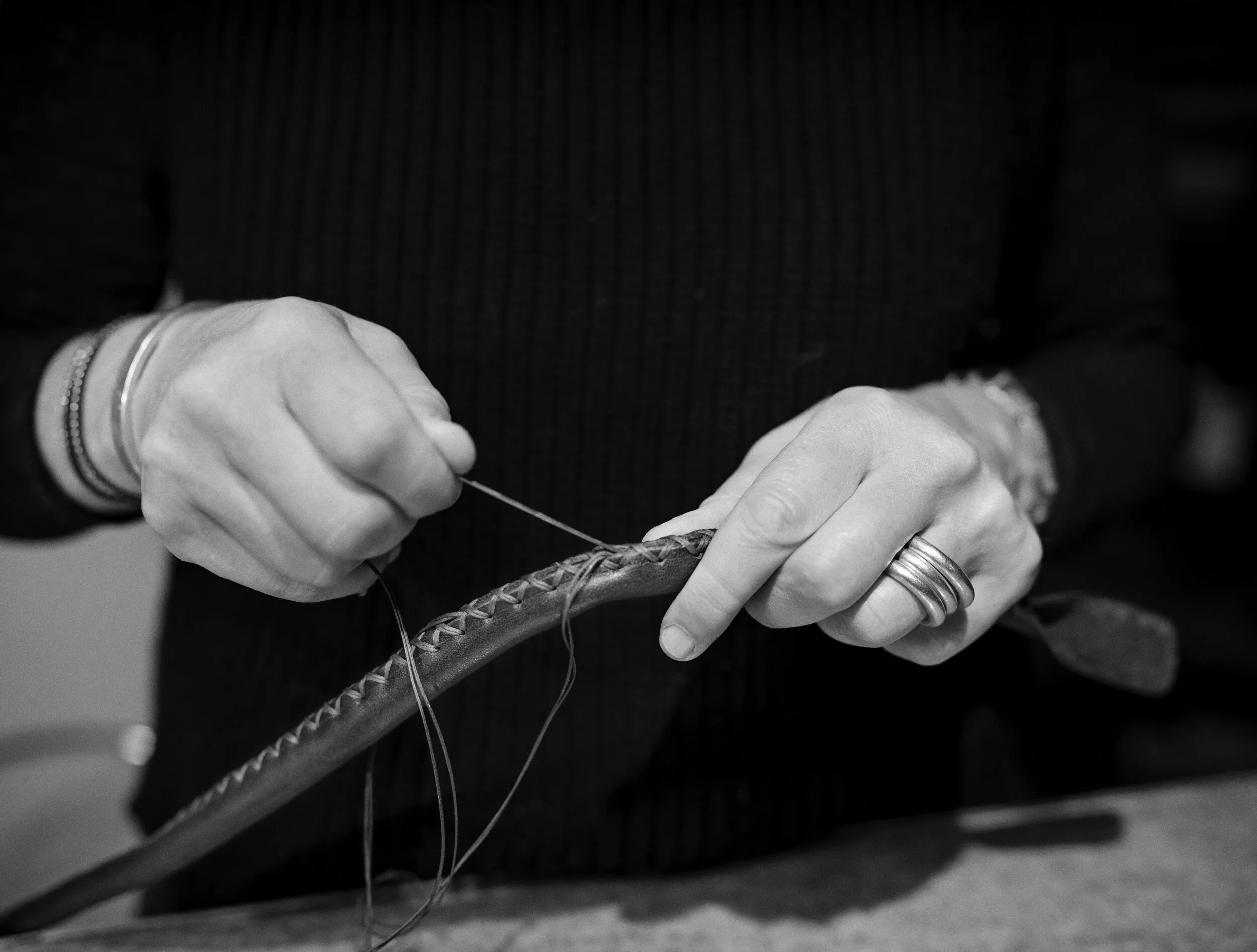 Stricken und Nähen hat Susann von ihrem Vater gelernt. Feinmaschige Kindheitserinnerungen, die bis in die Zwischennähte eng und herzlich geblieben sind. Seit vielen Jahren arbeitet Susann als Designerin und Produktentwicklerin renommierter Modelabels und entwirft und fertigt seit 2015 mit ihrem Vater gemeinsam Ledertaschen. Mit Hand und Herz.